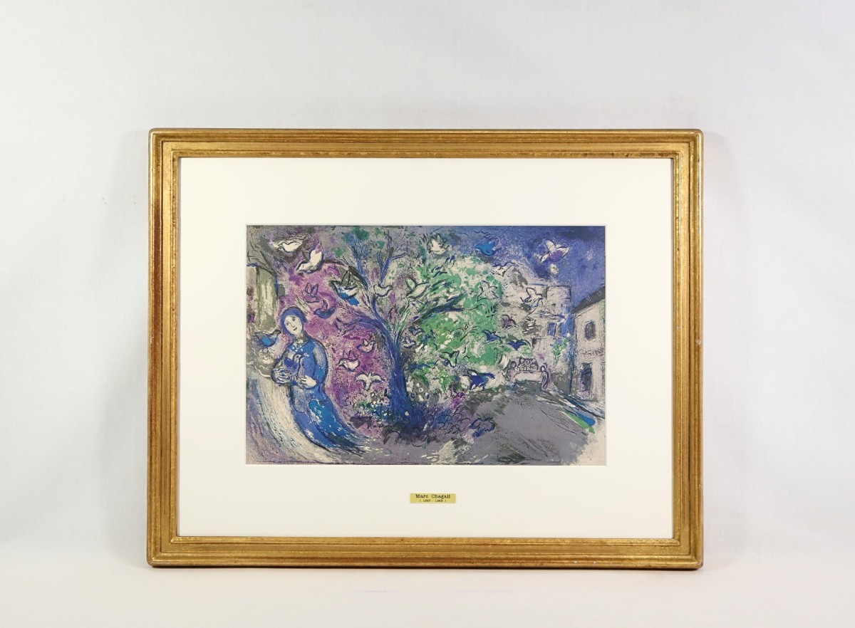 - マルク・シャガール オフセット「小鳥狩り」画寸 48cm×32cm ギリシャ神話ダフニスとクロエより ダフニスの名案 ニンテンカに群がる鳥 7372