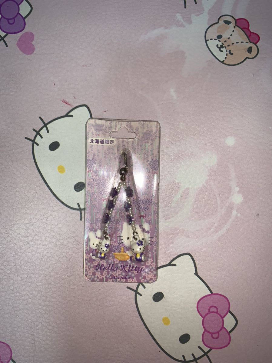 - 北海道限定、ラベンダーキティツインビーズストラップ