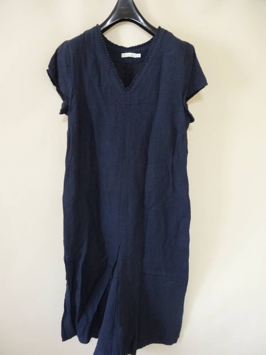 - 27.NATURE リネン ワンピース サイズ38 両サイドポケット ネイビー