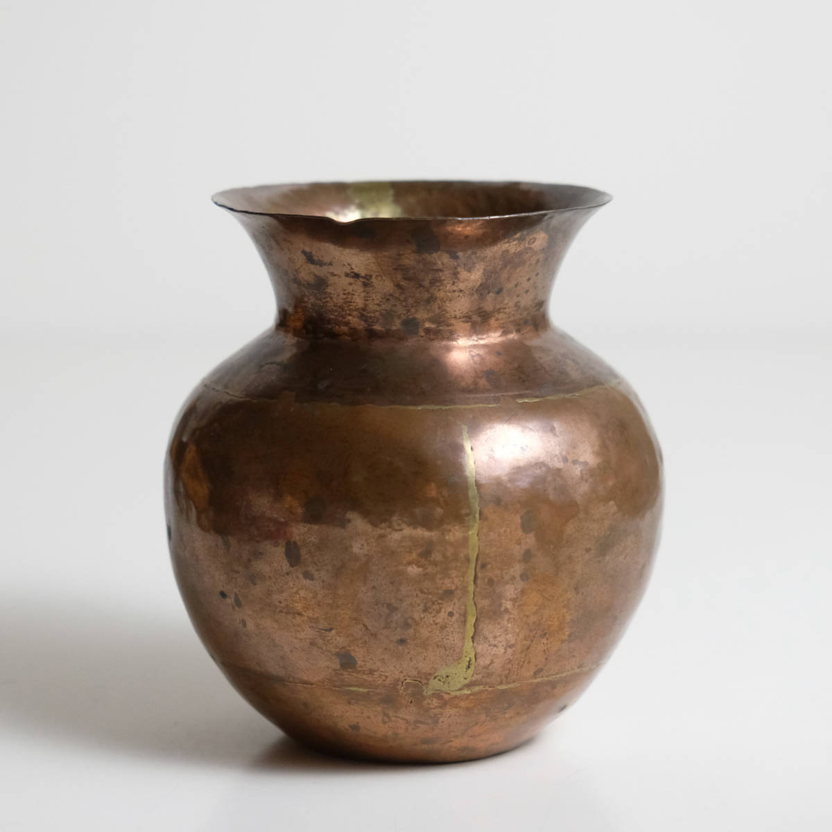 - 継ぎの有る銅製の壺 置物 オブジェ 古道具 古民芸 骨董 アンティーク 飾り 花器 花瓶などに 器