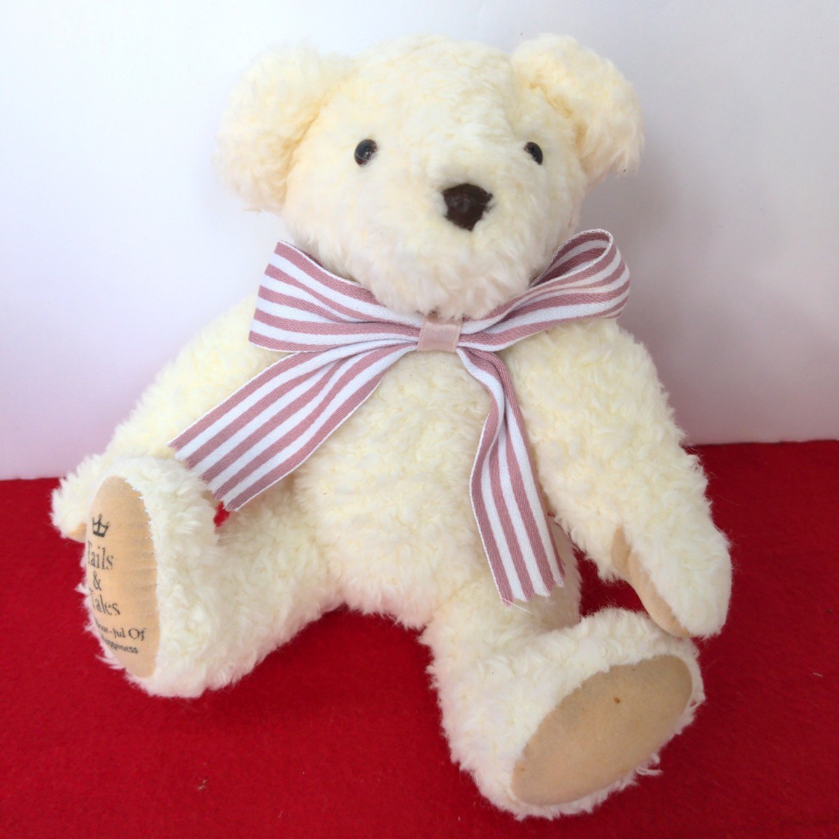 > サンアロー社 テディーベア Tails&Tales クマぬいぐるみ 高さ約16cm 横幅約16cm 奥行約11cm オフホワイト りぼん リボン ベアー