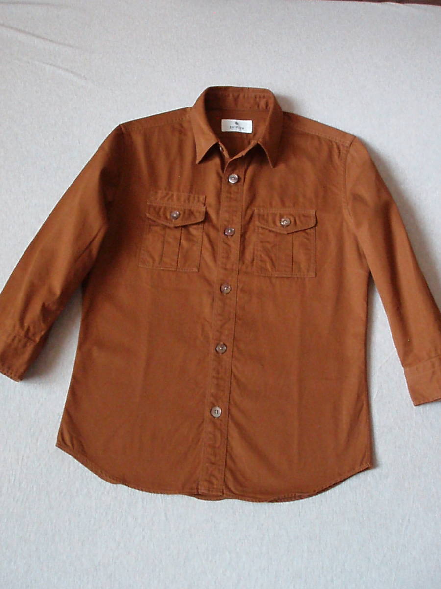 - 希少 Edifice エディフィス サファリシャツ 七分丈 オレンジ ブラウン 正規品 フラッグショップで購入 コットン