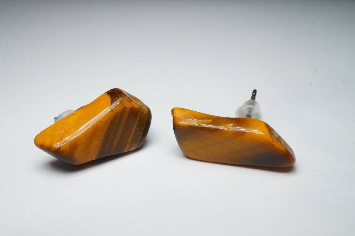 - 天然タイガーアイ原石スタッドピアス「原石のまんまピアスにしました」これからの季節に!