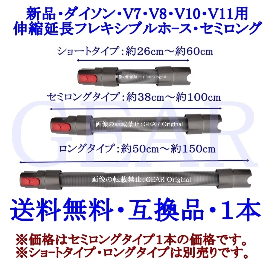 > ★ヤフネコ!送料無料★新品★ダイソン・Dyson・V7・V8・V10・V11・伸縮延長フレキシブルホ-ス・セミロングタイプ(約38cm~約100cm)1本★