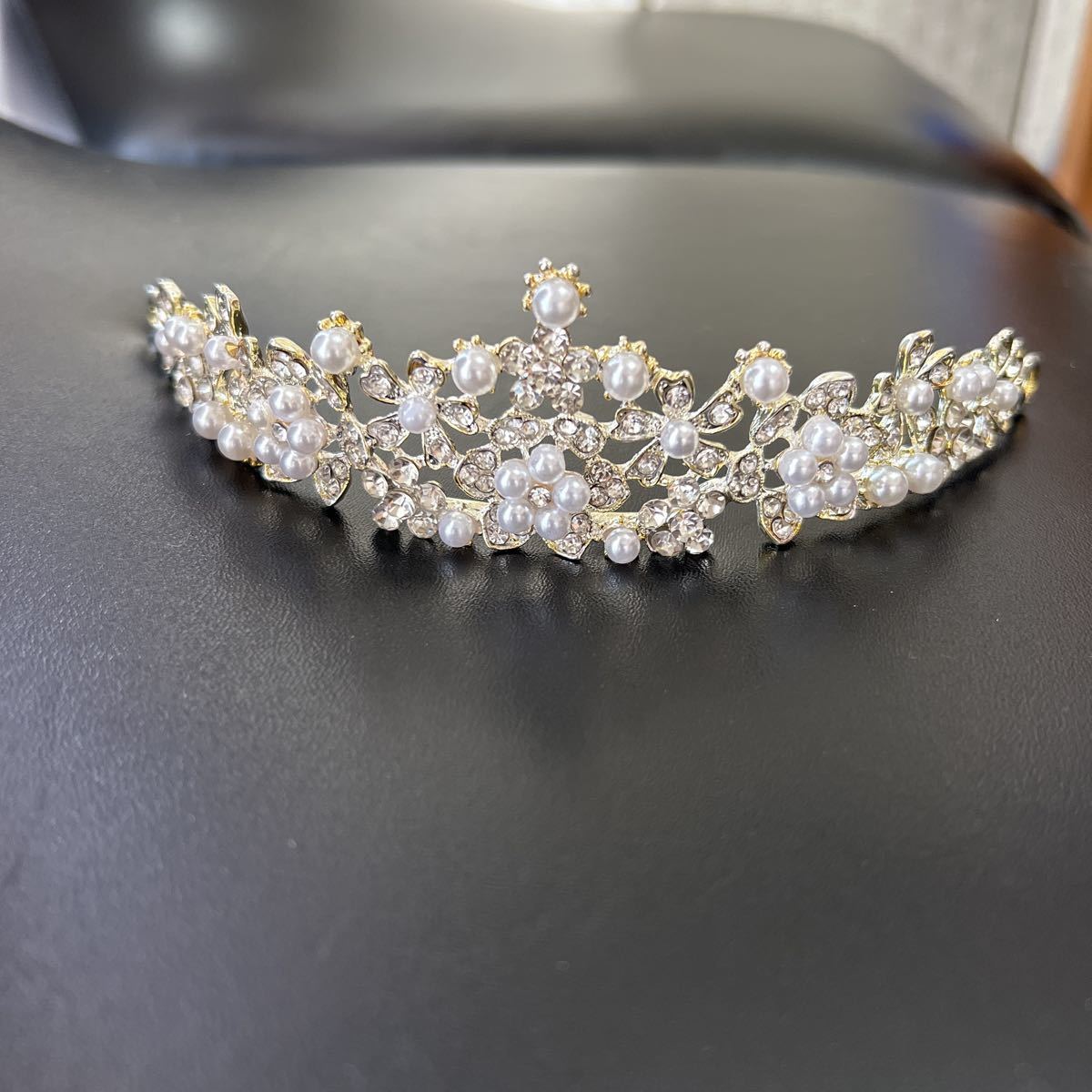 - ティアラ パール調 イエローゴールド ヘアアクセサリー