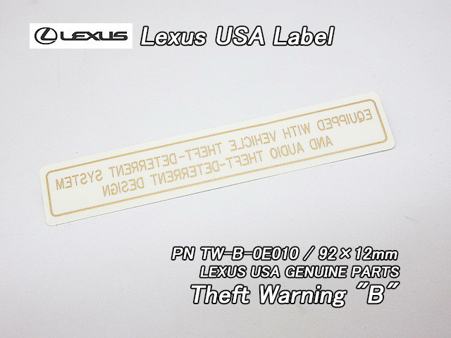 > レクサス/LEXUS/米国US純正セキュリティ.ラベル1枚Theft-Warning(Bタイプ)/USDM北米仕様T-DeterrentコーションSECURITYステッカーUSAシール