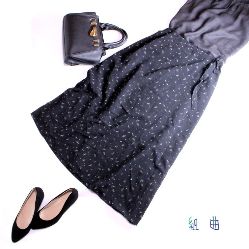 > 美品 組曲 クミキョク 株) オンワード樫山 ■ 春 夏 フラワー柄 ロング丈 シフォンスカート タイトスカート 2 9号 ブラック 黒 ラップ 清楚