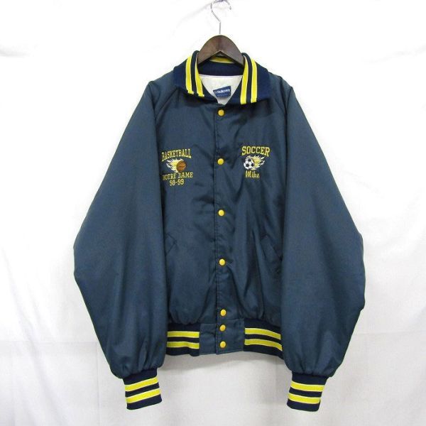 - USA製 サイズ XL Holloway ナイロン ジャケット スタジアム ジャンパー ネイビー ホロウェイ 古着 ビンテージ 刺繍 プリント 3M0907