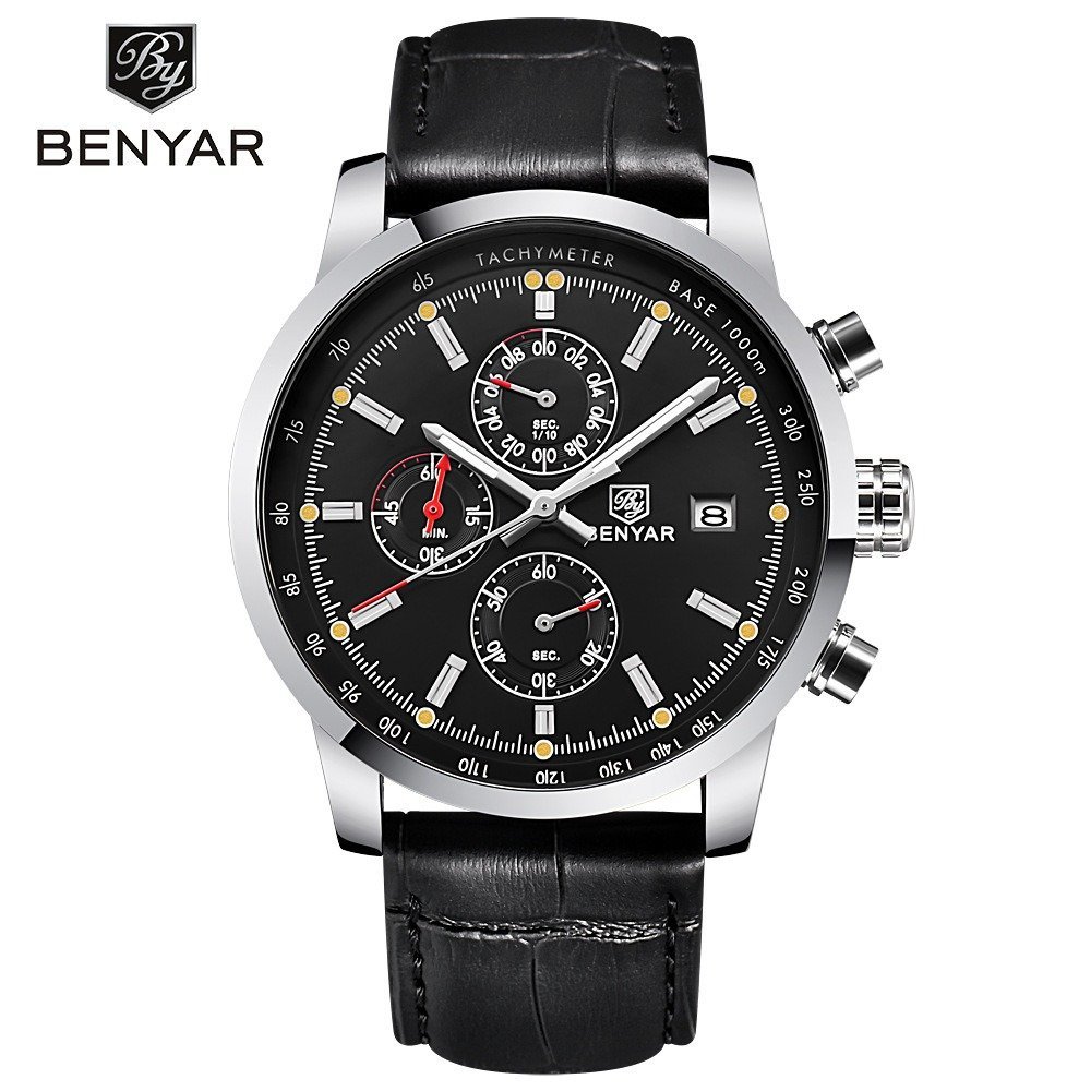 - ZPT156★BENYAR 、男性高級ブランドクォーツ時計ファッションクロノグラフ腕時計リロイ Hombre スポーツ時計男性時間レロジオ ブラック