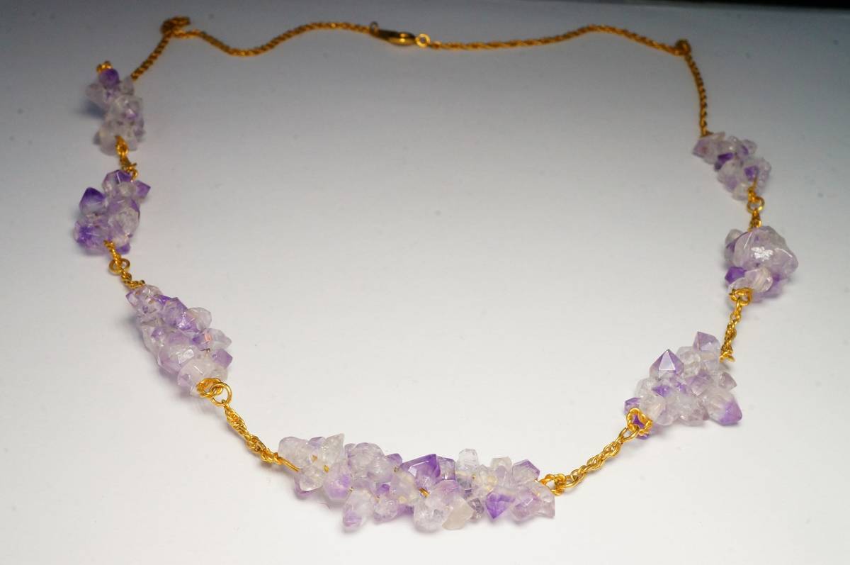 - 希少!昔の在庫なので上質品!藍色が綺麗な上質アメジスト六角剣状原石デザインロングネックレス14.8g