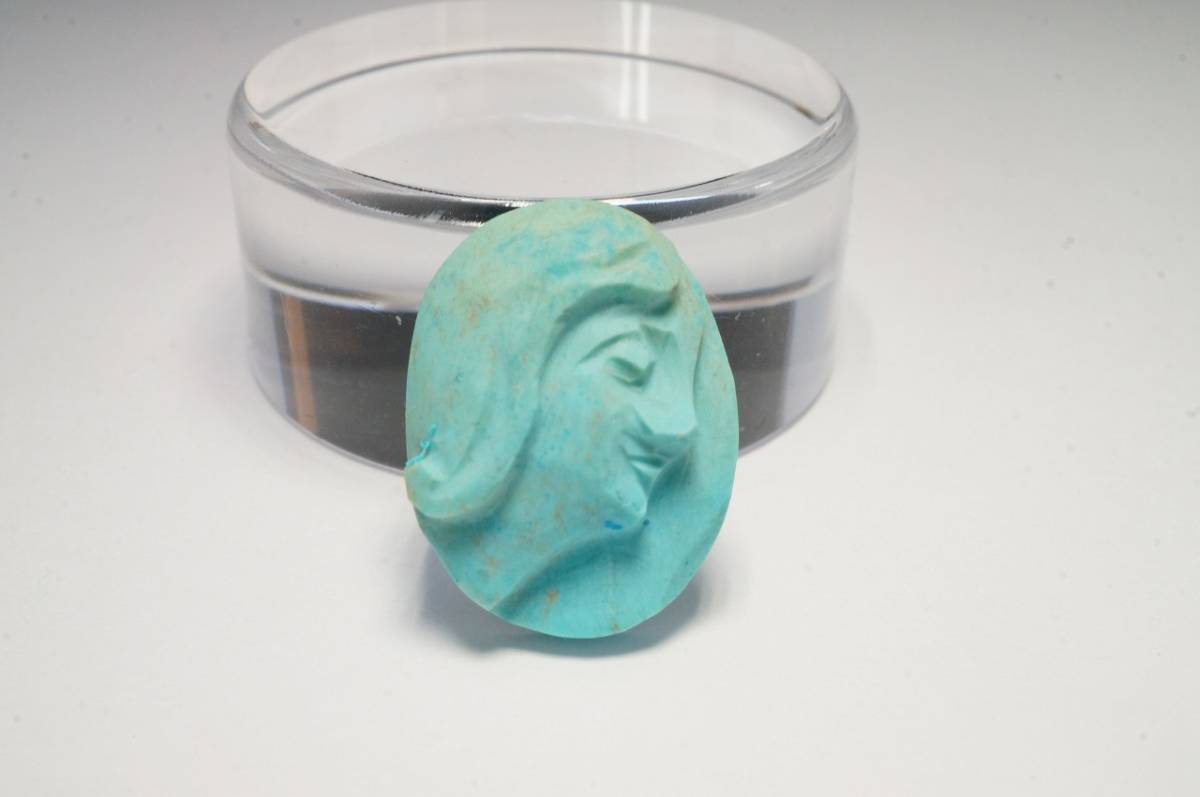 - 昔の未使用在庫!!希少!ハイグレード【ナチュラル トルコ石(ターコイズ) 貴婦人】天然カメオルース裸石7.15ct