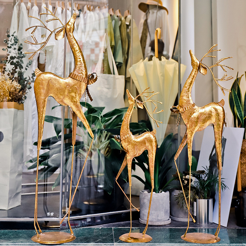 - 金色鹿のオブジェ3点セット アート 置物 おしゃれ お洒落 かわいい インテリア 雑貨 リビングルーム ダイニングルーム 小物 プレゼント