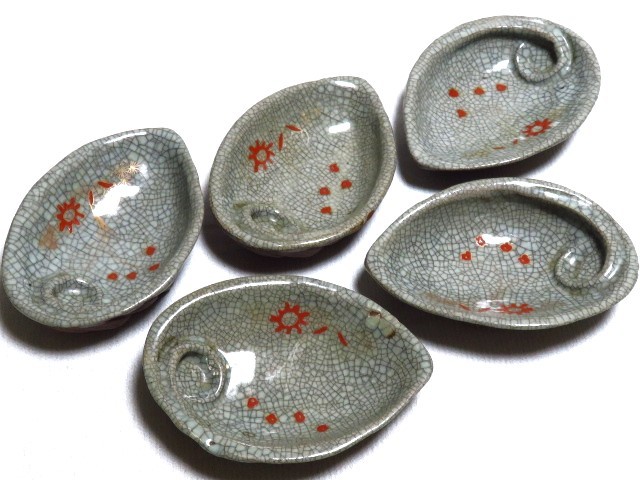 - 鮑皿まとめて5客 アワビ形皿 相馬 変形皿