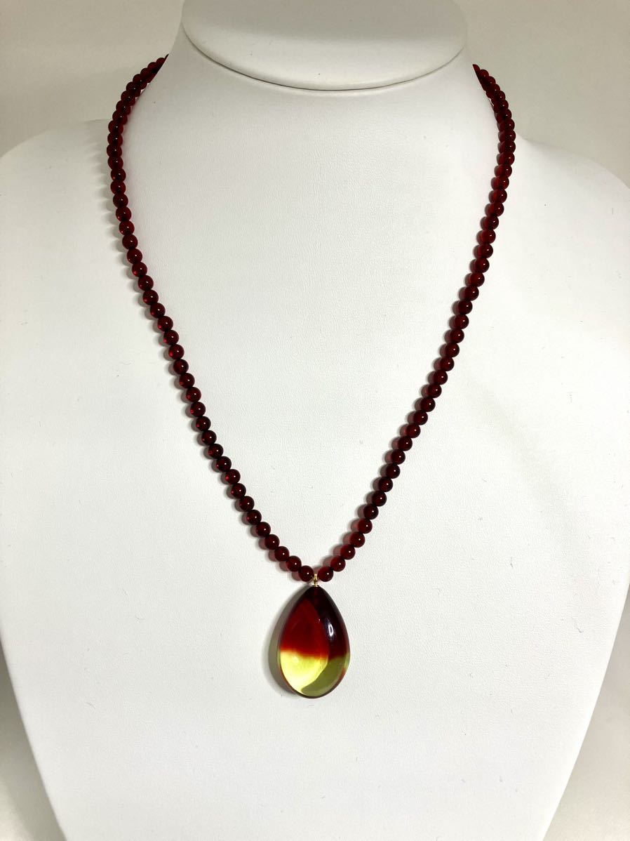 - 【新品】リトアニア産バイカラーレッド琥珀ネックレス*こはく*コハク*アンバー*グラデーション*雫*一点もの*チェリーアンバー