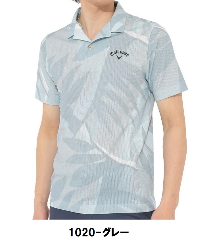 > キャロウェイ 【Callaway】 メンズ 総柄 ボタニカルプリント ストレッチ 半袖 シャツ C22134124 グレー LL【2418】ネコポス対応