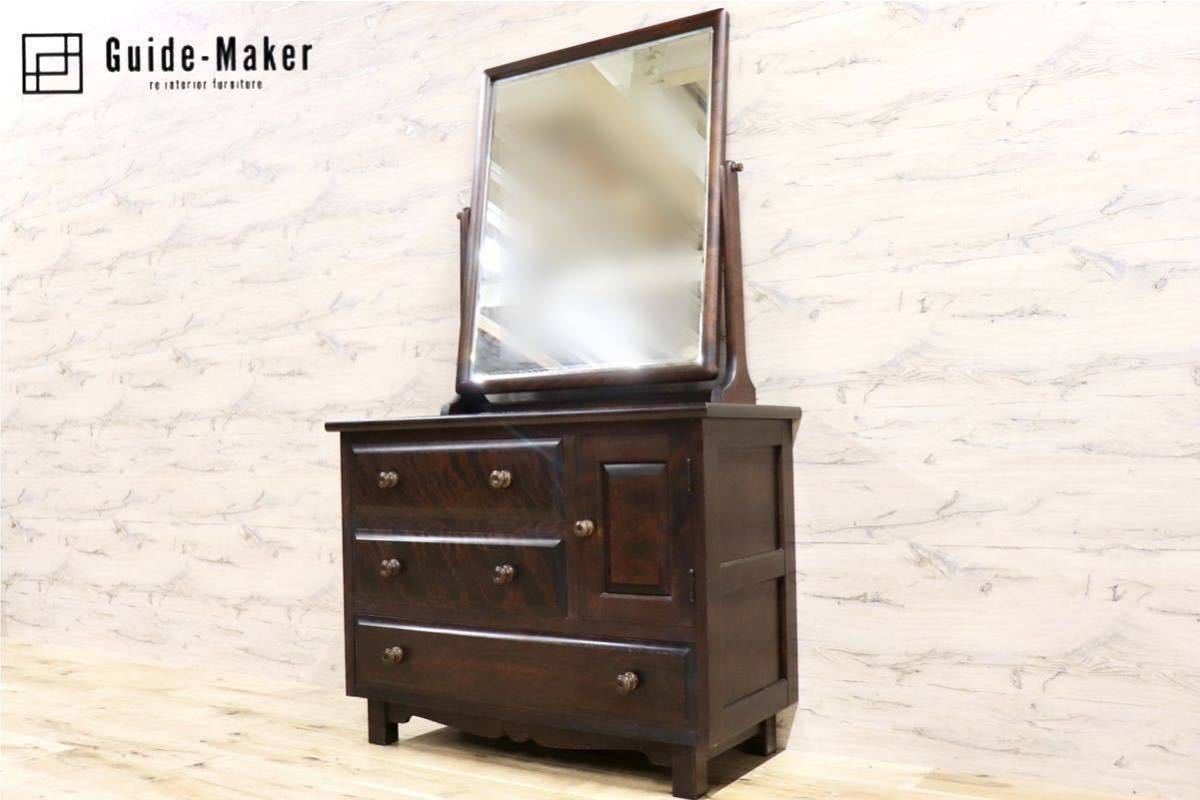 > GMGK57○北海道民芸家具 ドレッサー 鏡台 化粧台 ミラー チェスト 整理箪笥 収納家具 樺材 アンティーク レトロ 古民家 和モダン 国産家具