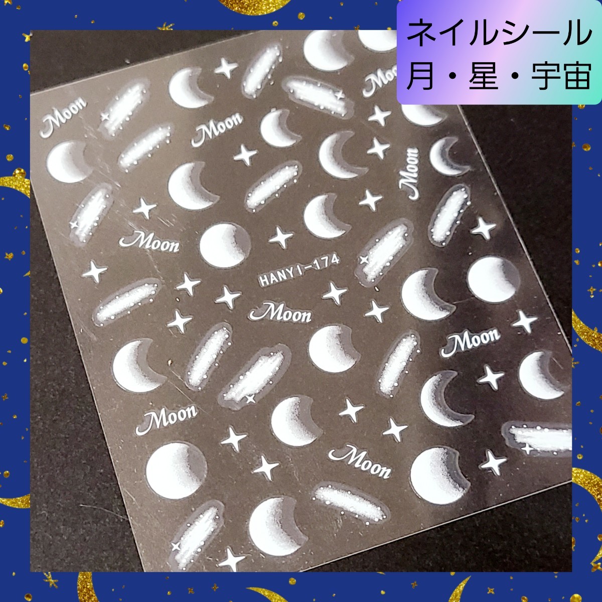- 極薄 ネイルシール ステッカー 月 星 宇宙 夜空 白 nail【174】1 ネイル レジン