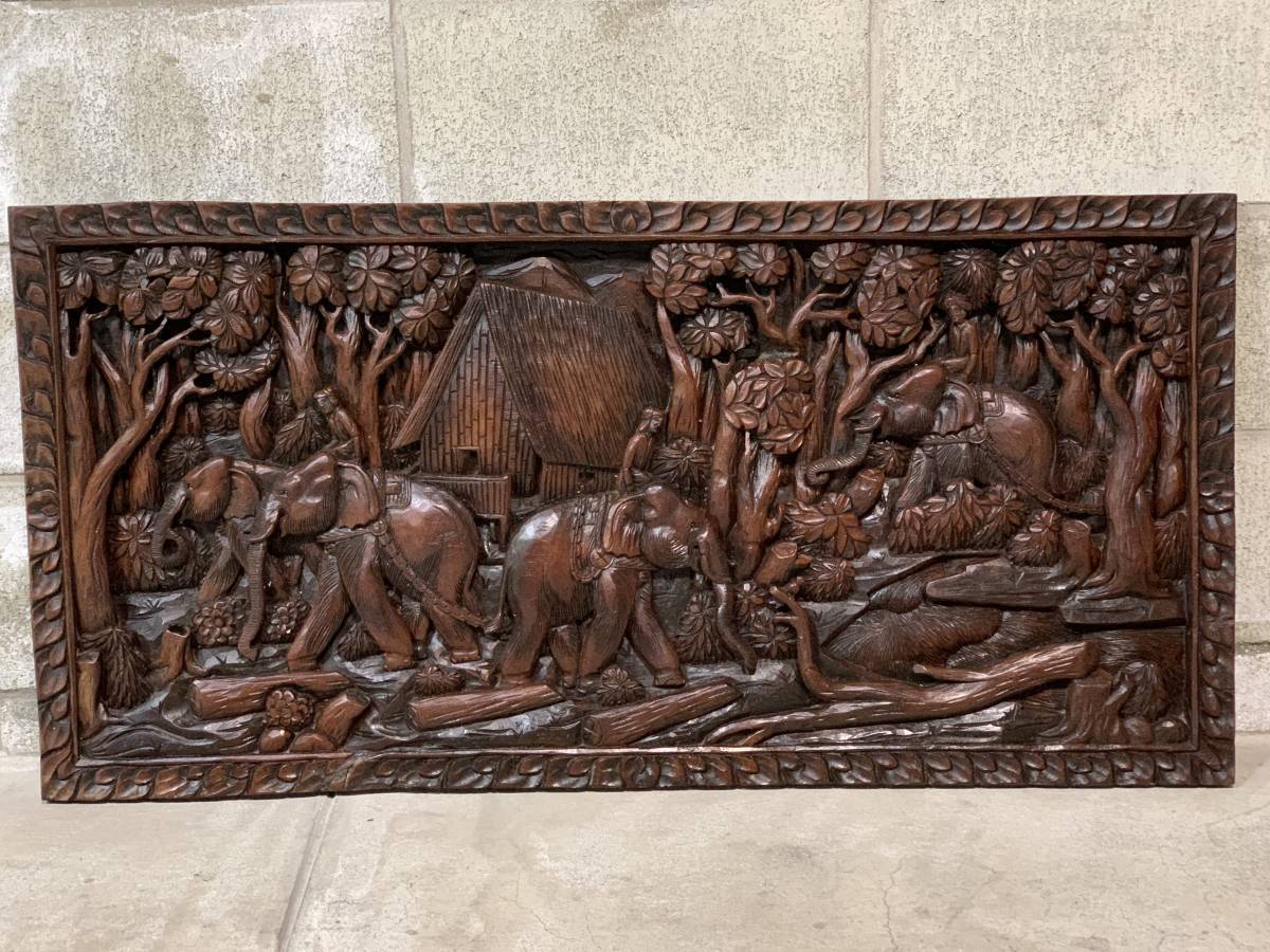 > 希少 特大サイズ 1970年代 象 ゾウ 木彫り 一枚板 レリーフ サイズ:約103㎝×50㎝×3㎝ 重さ約9.5㎏ アンティーク レトロ 雑貨