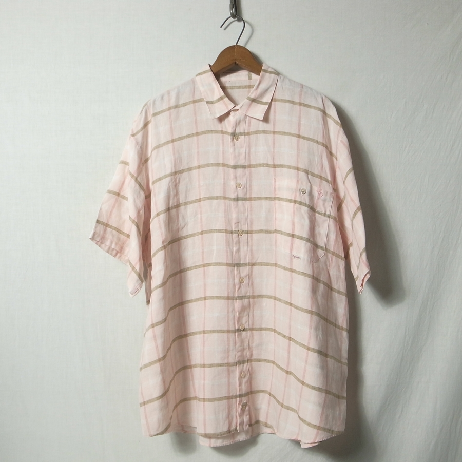 - Papas パパス 半袖 リネン シャツ 50*L チェック ピンク系 / 麻 夏物 アロハ