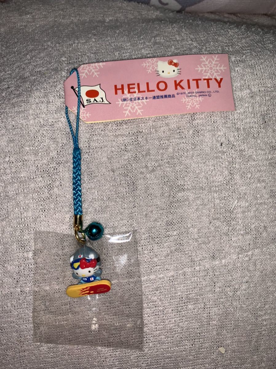 - 全日本スキー連盟推薦商品、ハローキティスノボー根付け