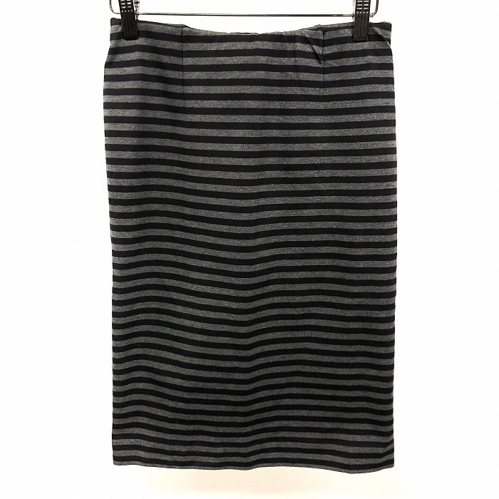> 【新品】Deuxieme Classe ストレッチ ポンチ ボーダー スカート ウエストゴム 裏地付き 38 ヘザーグレー×ブラック グレー レディース