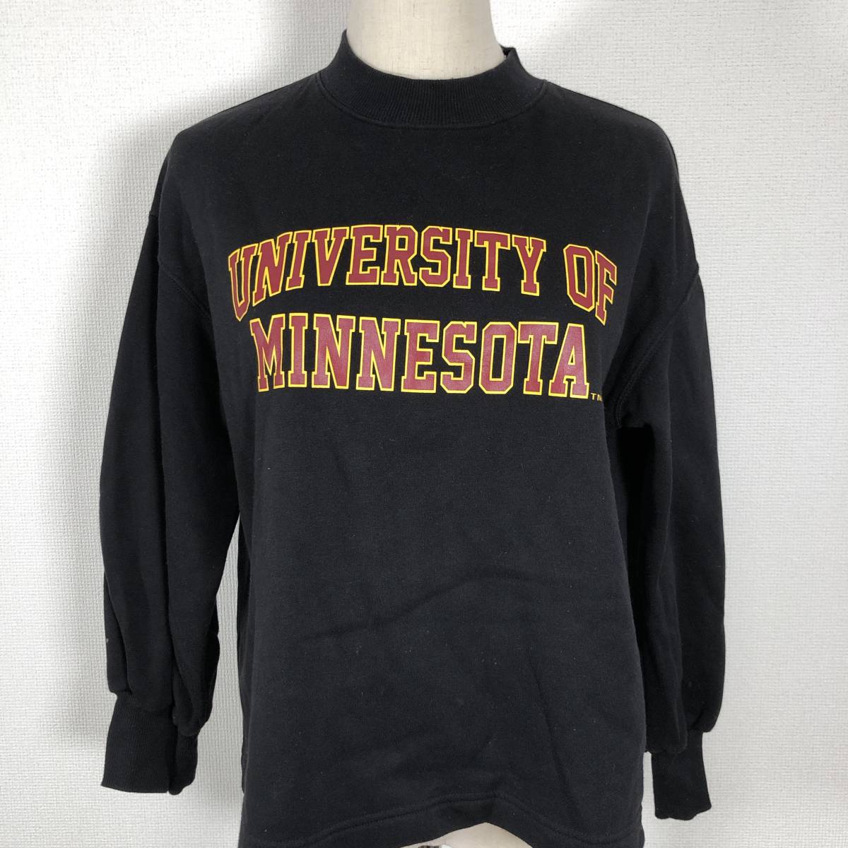 > WS0034 UNIVERSITY OF MINNESOTAGU(ジーユー) レディース トレーナー 長袖 人気 M 黒 ビッグロゴ 古着 カジュアル プリント
