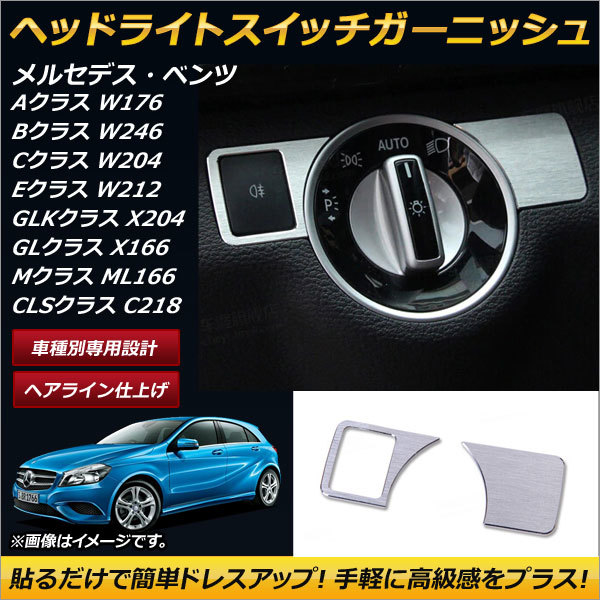 - ヘッドライトスイッチガーニッシュ メルセデス・ベンツ Cクラス W204 2007年~ ヘアライン仕上げ 入数:1セット(2個) AP-IT176