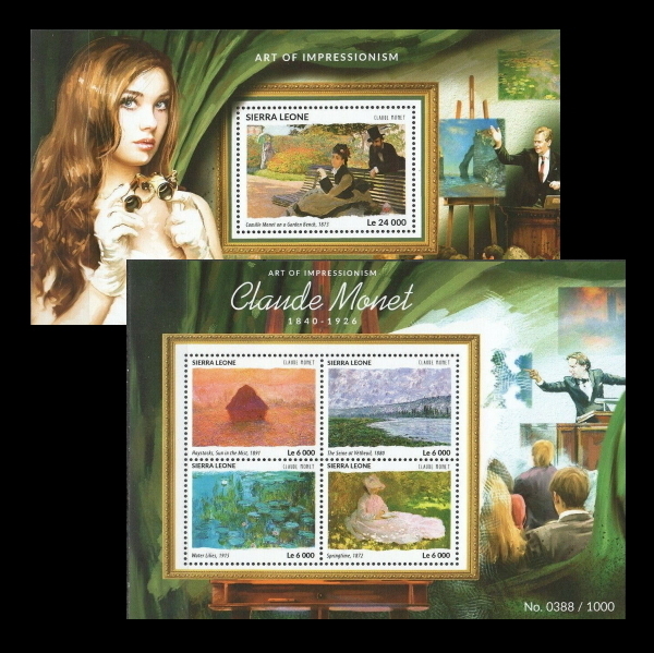 - ■シエラレオネ切手 2015年 絵画 / クロード・モネ シート+4種シート 限定1000
