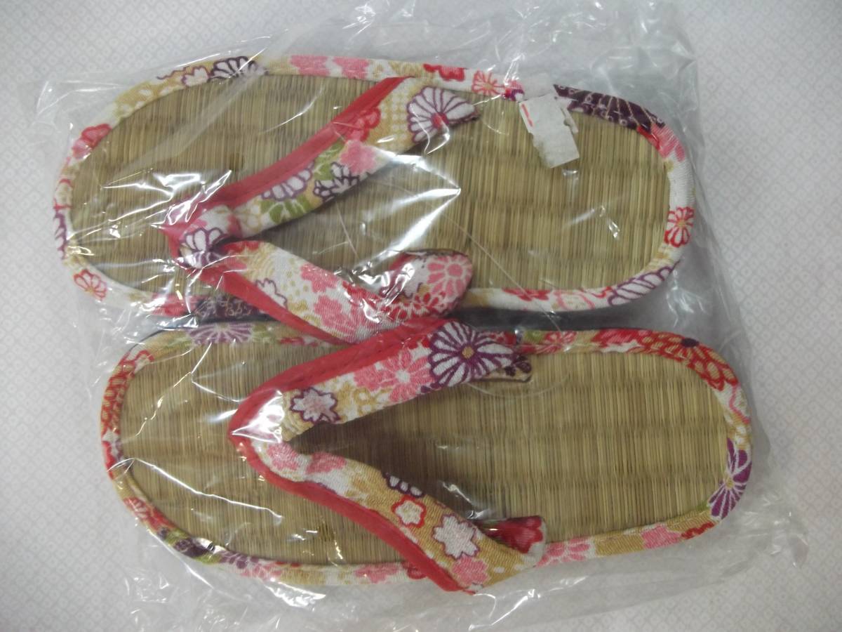 - 子供用 女性用 い草 花柄 雪駄 全長21cm ①【草履 ぞうり イグサ 畳表 和柄 和風 お洒落 おしゃれ 赤色】