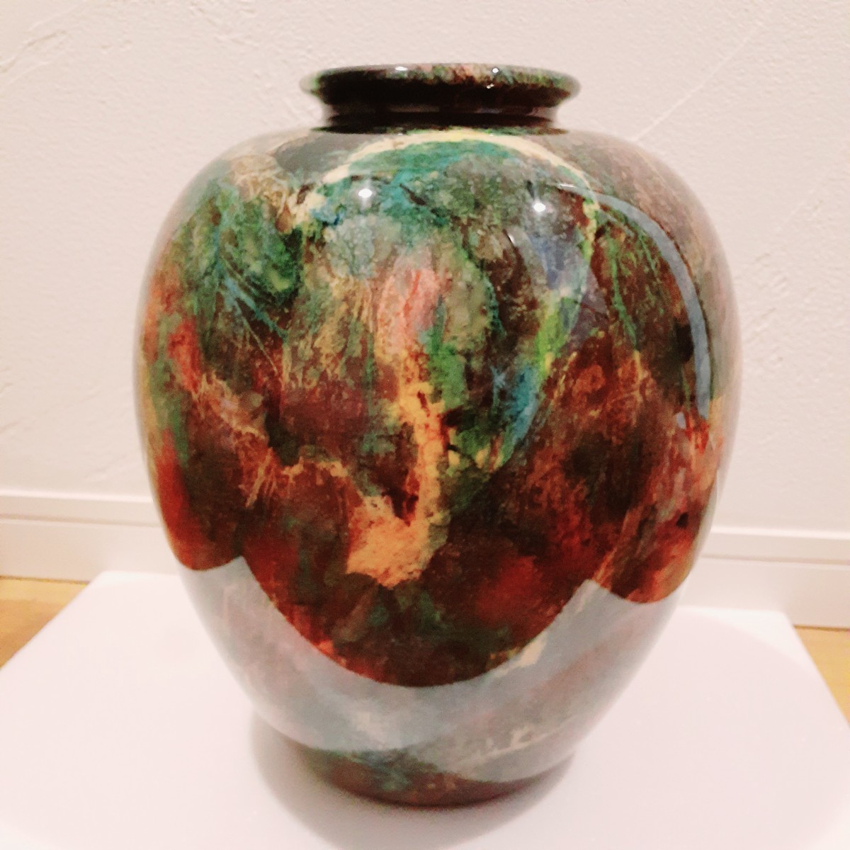 - 七彩石 花瓶 花入 飾り壺 約30.5cm×22cm