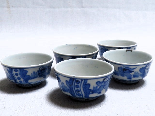 - 煎茶碗まとめて5客 染付 底款印 茶器 茶道具 煎茶道具