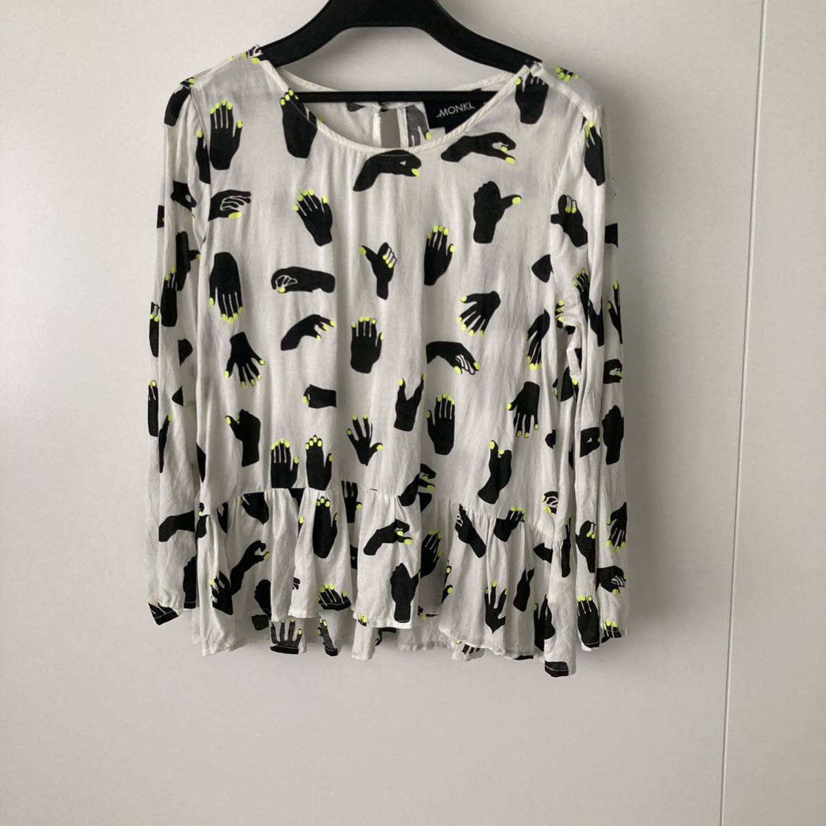 - monkiモンキ手ハンドネイル柄ペプラムプルオーバーシャツ