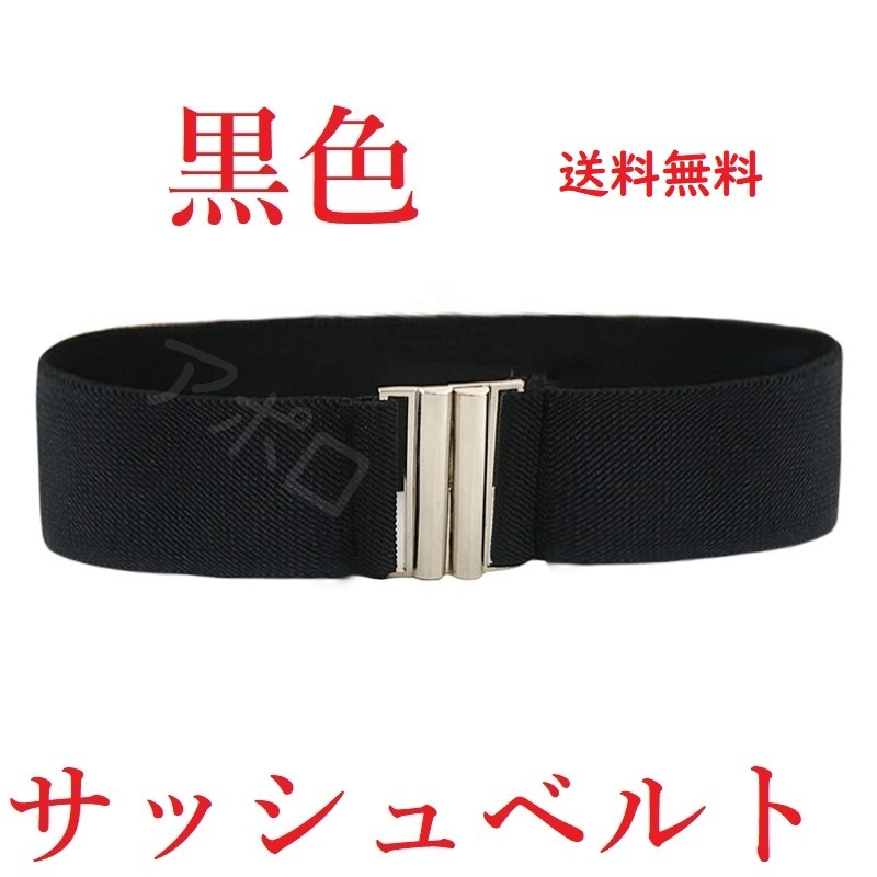 - 送料込み ブラック バックル 黒 ゴムベルト サッシュベルト 黒色 コルセットベルト No.825 B