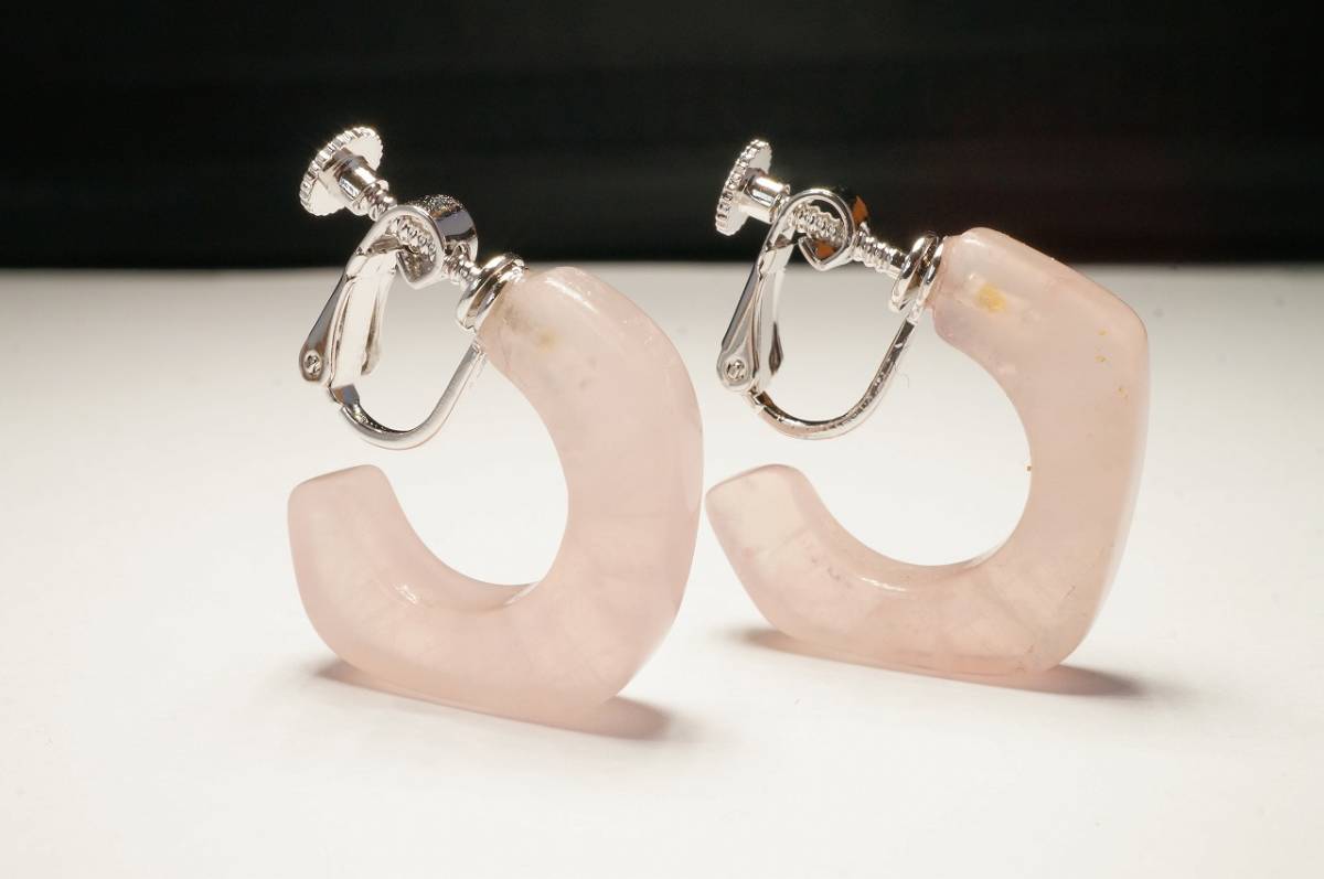 - 【特別即決価格!早い者勝ち!】極上ローズクォーツオリジナルカット高透明度イヤリング(ペア)7.07g