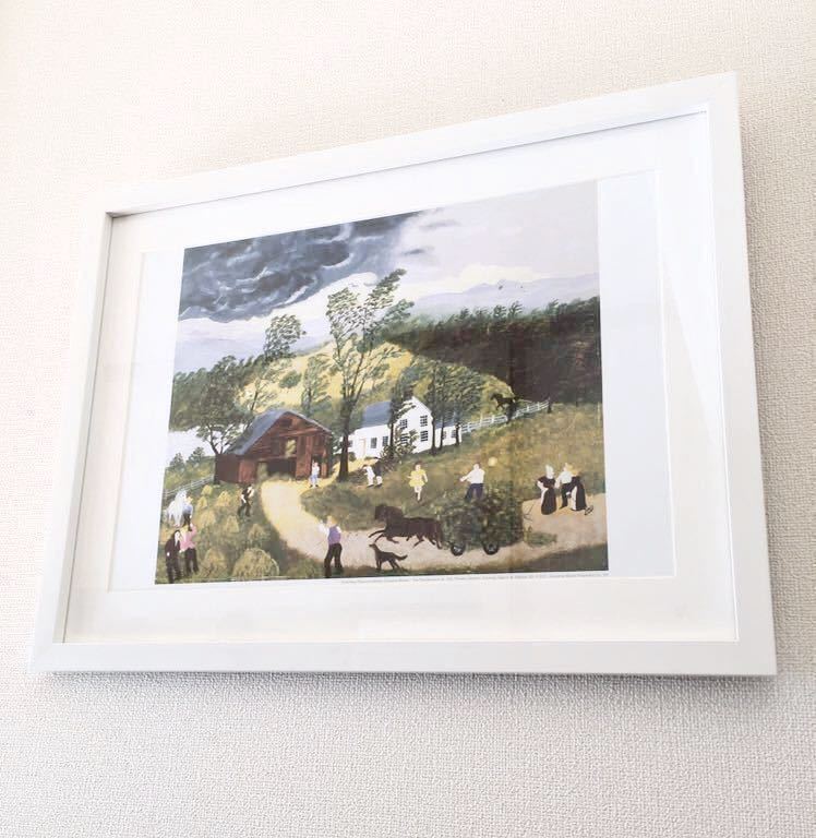 - 【グランマ・モーゼス】絵柄16種展開「雷雨」印刷物 グランマモーゼス 絵 額 木製額装44.1×33.8cm 絵柄違い有