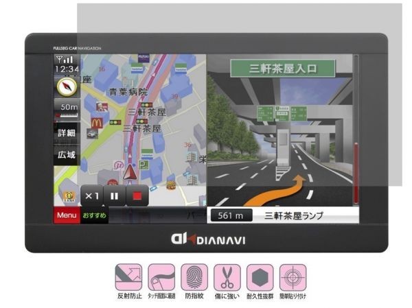 - 10-03-01【7インチ】nplace DIANAVI DT-Y716 フルセグポータブルナビケーション用 反射 キズ防止 抗菌 目を保護 気泡ゼロ液晶保護フィルム