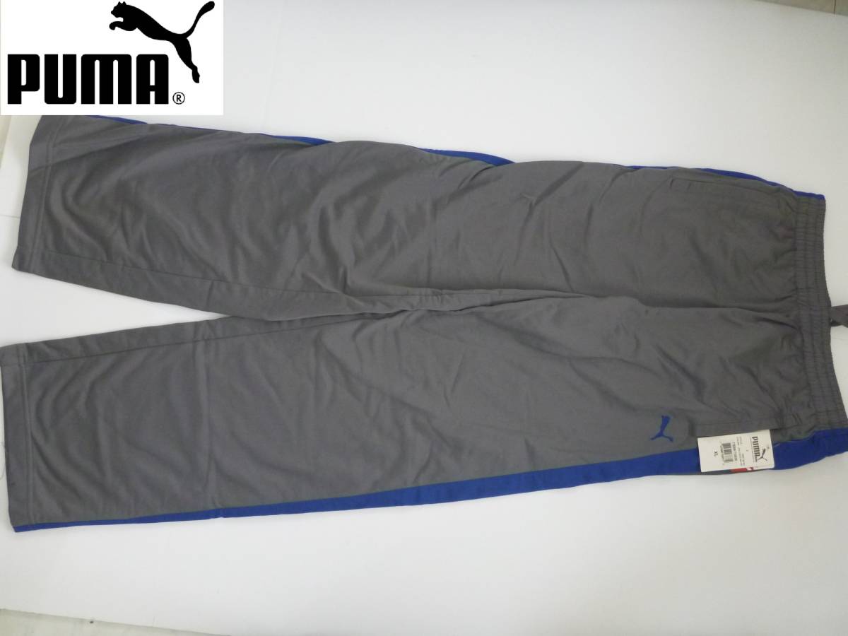 > 新品 PUMA プーマ★ グレー×青 ロゴ刺繍 裏地起毛 パンツ XL…160相当 スポーツウェア