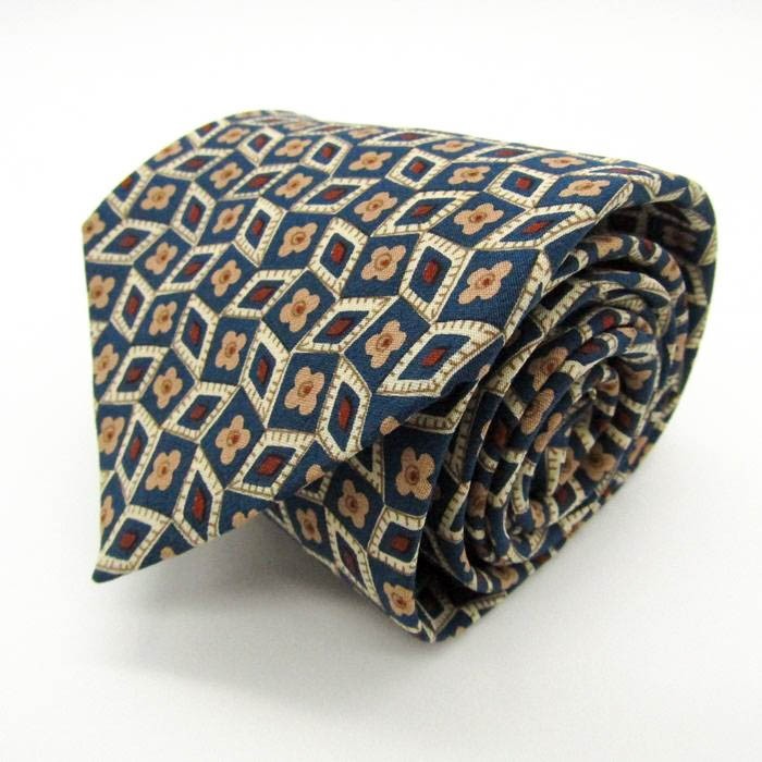- クリスチャンディオール シルク 小紋柄 総柄 格子柄 花柄 ブランド ネクタイ メンズ ネイビー 良品 Christian Dior