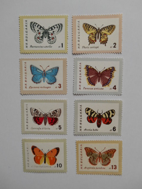 1st.:Parnassius apollo2st.:Tais cerisyi3st.:Licaena meleager4st.:Vanessa antiopa5st.:Catocala delecta6st.:Arctia hebe10st.:Celias balcanica13st.:Argynnis pandora