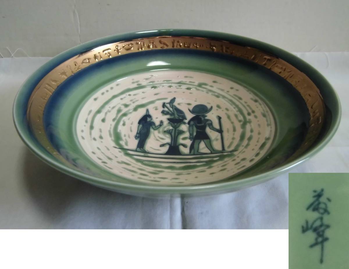 > 大鉢 在銘 金彩 エジプト柄 25cm 盛鉢 菓子鉢 盛皿 大皿 陶器 工芸品 食器 レトロ