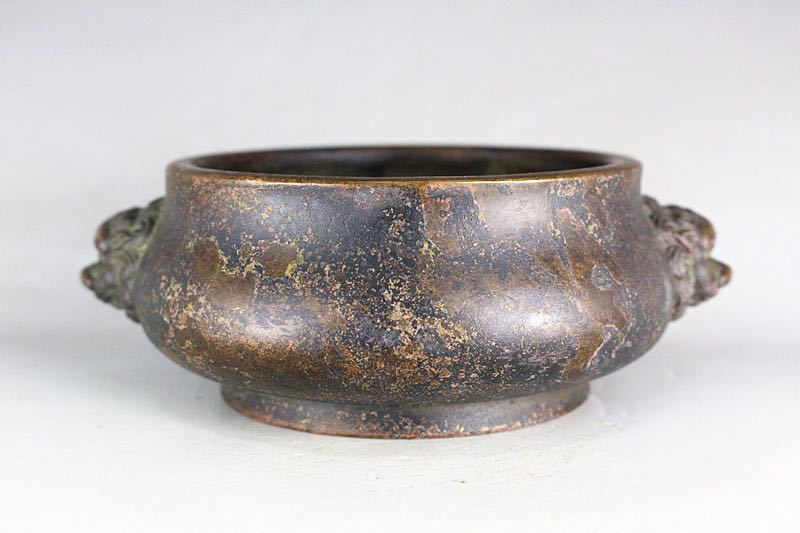 - 蔵出珍品 極美古銅香炉質感 細工 在銘銅獅首香炉 覇ライオン 気勢気迫 悪避け 鎮宅 焼香で幸せな日々に 縁起物 古玩 款 藏