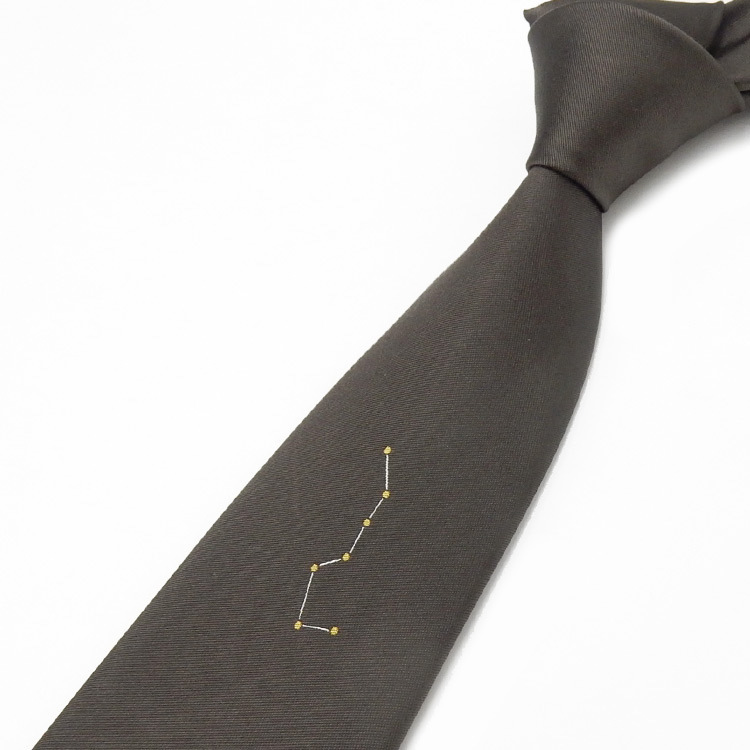 - 日本製ネクタイ シルクブレンドタイ 濃グレー ワンポイント/北斗七星 甲州織 メール便OK SP-N06