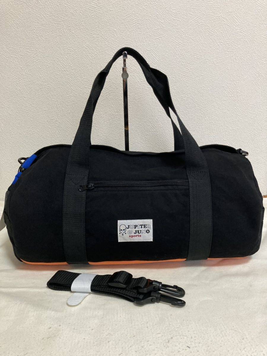 - 【新品】Jupiter&Juno sports ジュピターアンドジュノ 2wayスウェット地ドラムボストンバッグ 黒/オレンジ 市価1.2万 激安!