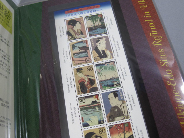 > 平成20年 2008年 江戸名所と粋の浮世絵 切手帳 未使用 広重 歌麿 写楽の弐 Stamp Booklet 80円切手 10枚
