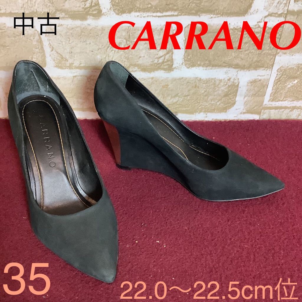 - 【売り切り!送料無料!】A-100 CARRANO!ウェッジソールパンプス!35 22.0〜22.5cm 位!ブラック!黒!ゴールドヒール!おしゃれ!中古!