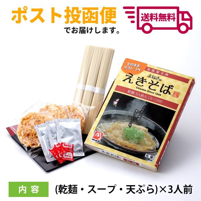 - 【メール便】 そば 乾麺 姫路駅名物 まねきのえきそば ポストインタイプ 昔懐かしい思い出の味 お土産 三人前セット