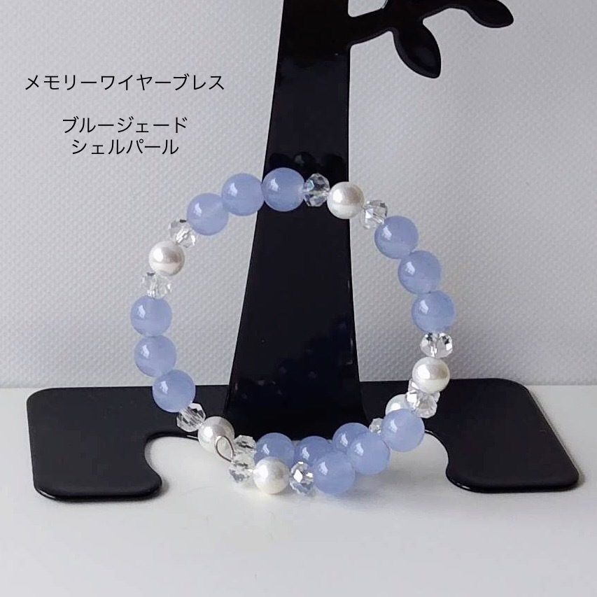 - 天然石メモリーワイヤーブレスレット(ブルージェード、シェルパール)