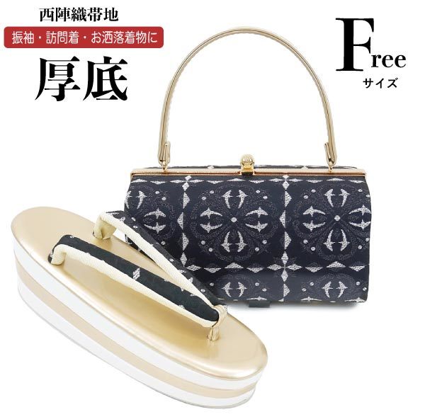 - フリーサイズ 厚底 草履バッグセット 振袖用 西陣織 成人式 zb-060 結婚式 卒業式 黒