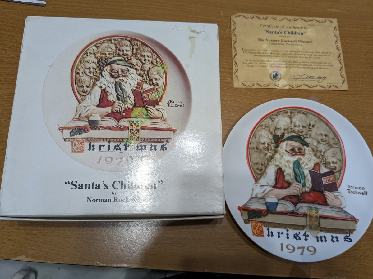 - ノーマンロックウェル★クリスマスプレート★サンタズチルドレン★1979年メイドインジャパン★箱証明書あり★汚れ破れあり★超レアレトロ