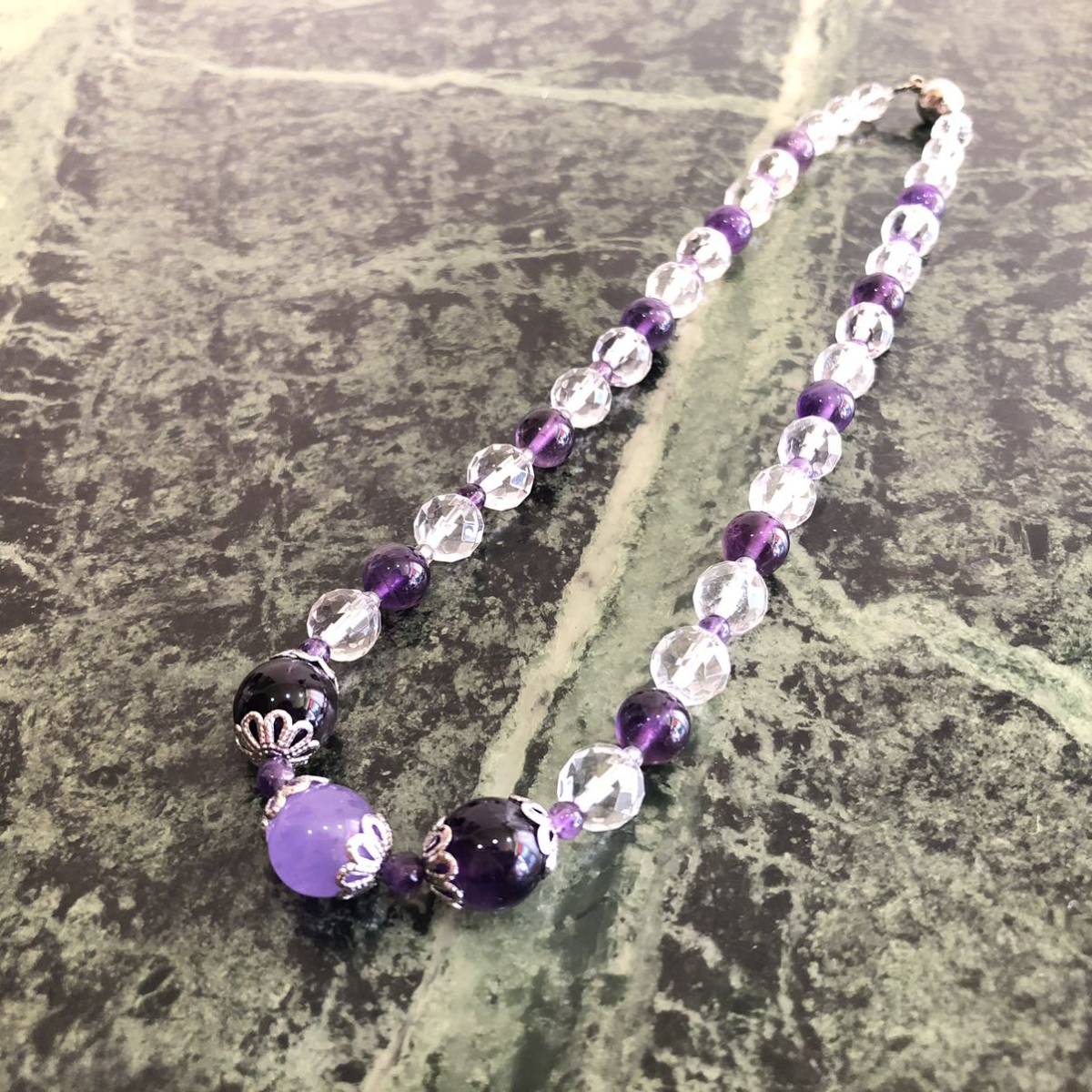- 【新品】天然石ネックレス★アメジスト 水晶 クリスタル カラーストーン 紫 クリアカラー 透明